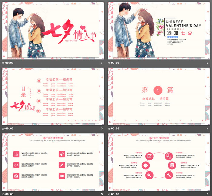 这是一套唯美水彩情侣背景的,七夕情人节PPT模板,共26页;