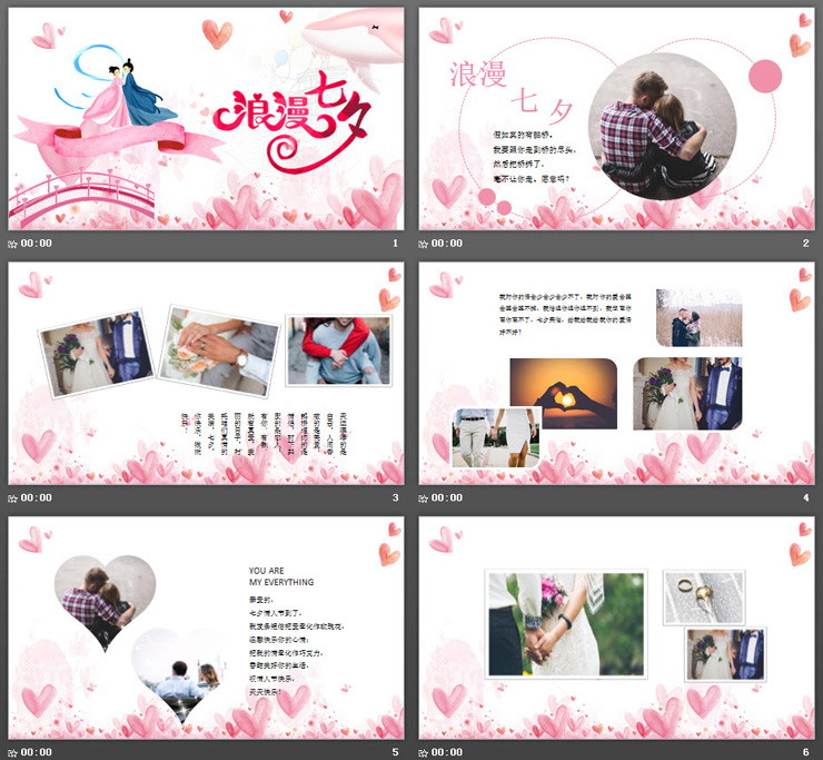 粉色浪漫七夕爱情相册PPT模板,共22页;
