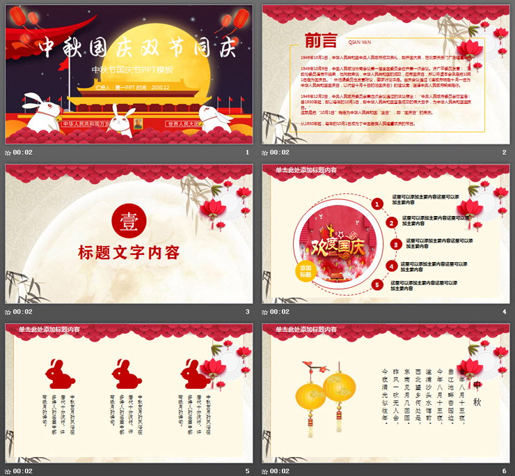 本模板适合用于制作中秋国庆双节主题PPT。.PPTX格式;