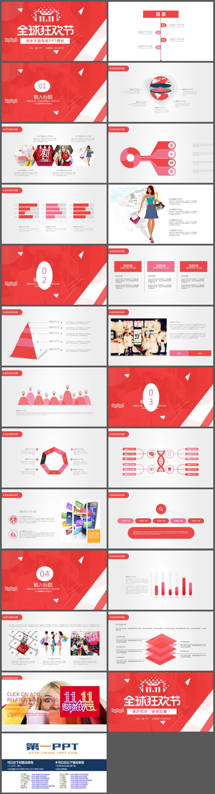 桔红色天猫双十一全球狂欢节PPT模板,共24页;