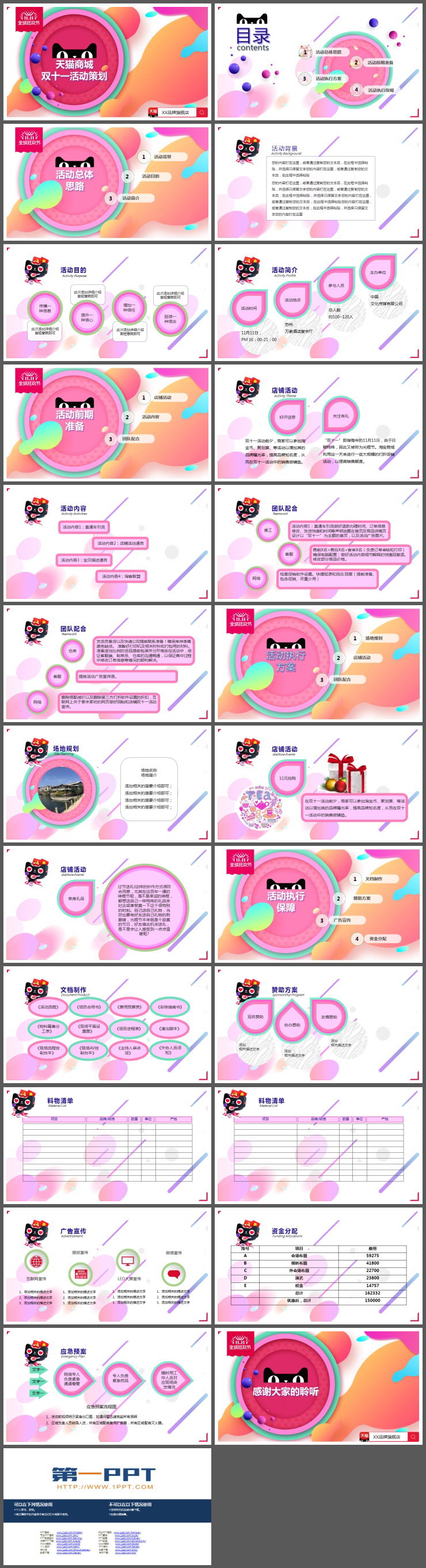 彩色动感时尚天猫双十一活动策划PPT模板,共24页;
