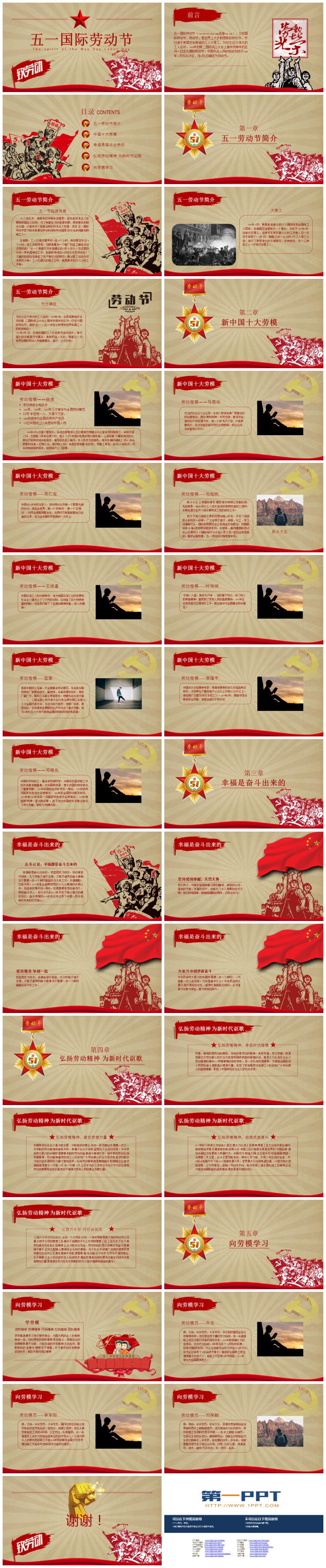 复古宣传画风五一国际劳动节PPT模板,共33页;