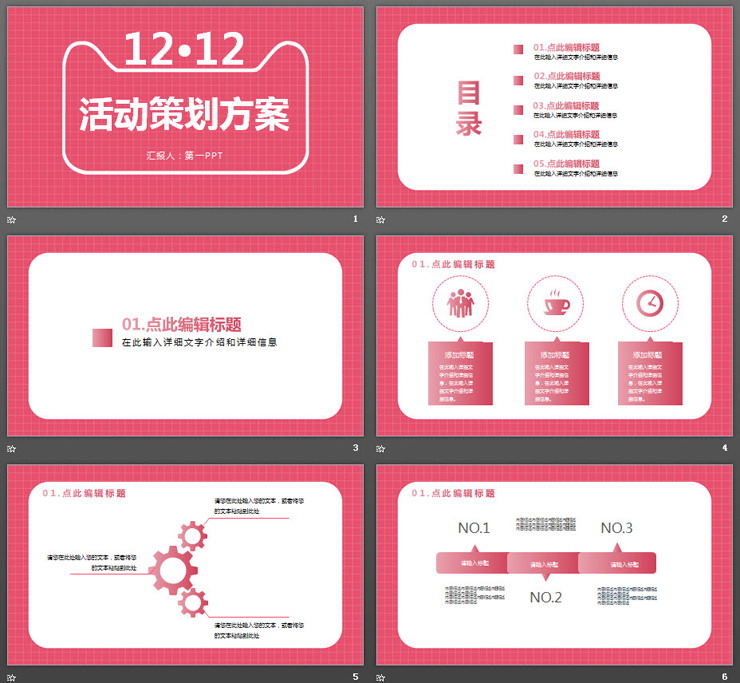 粉色网格背景的双十二活动策划PPT模板,共31张;
