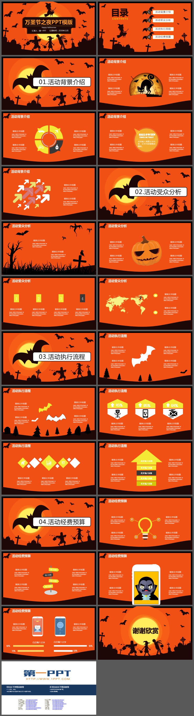 橙黑配色的万圣节之夜PPT模板,共24页;