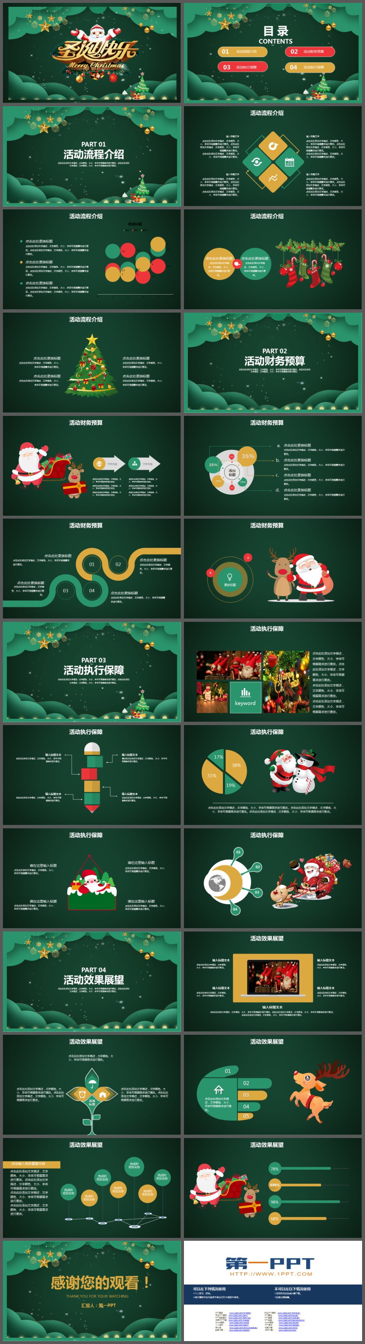 这是一套绿色卡通圣诞快乐PPT模板,共25页;