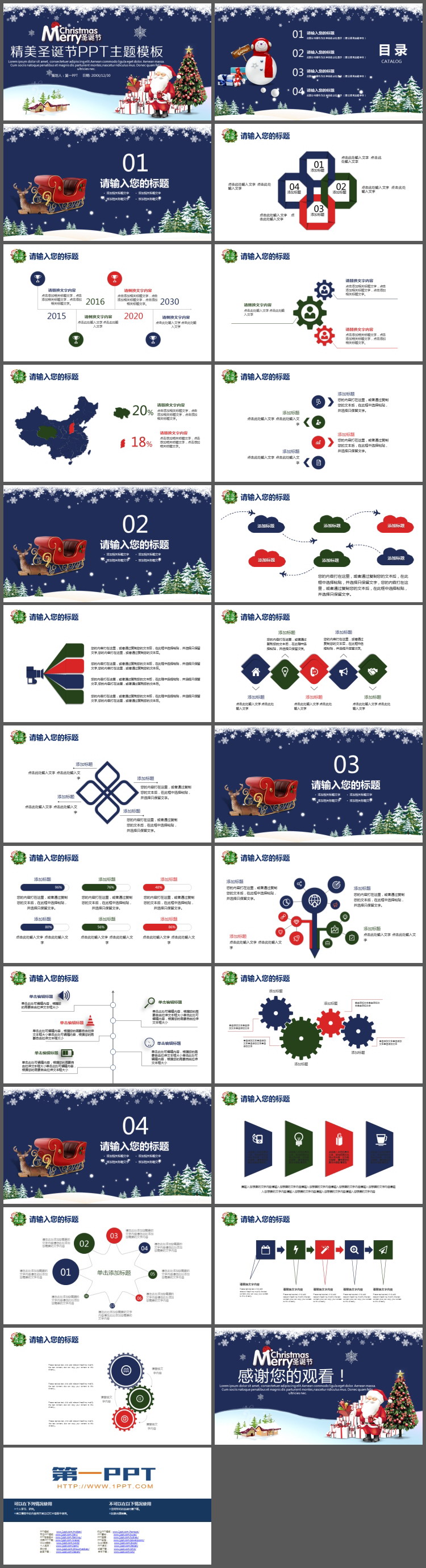 这是一套蓝色精美圣诞节PPT模板。共24页;