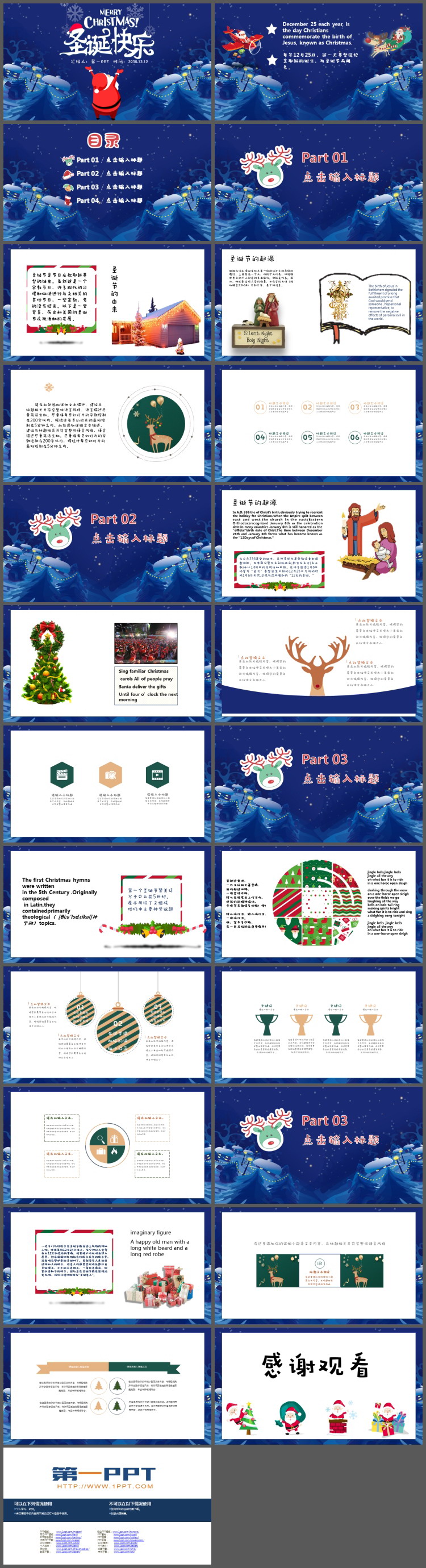这是一套蓝色圣诞快乐PPT模板,共24页;