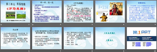 关键词:万马奔腾教学课件,七年级上册音乐PPT课件下载,七年级音乐幻灯片课件下载,万马奔腾PPT课件下载,.PPT格式;