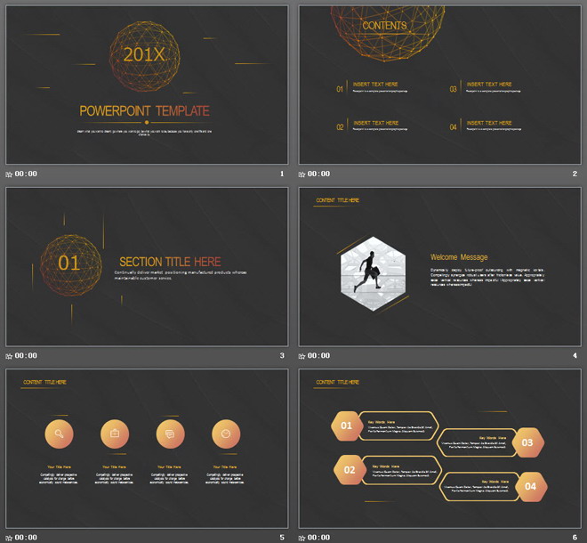 关键词:棕色幻灯片底图,橙色扁平化PowerPoint图表,动态点线球体PPT背景图片,精美科技幻灯片模板,.PPTX格式;