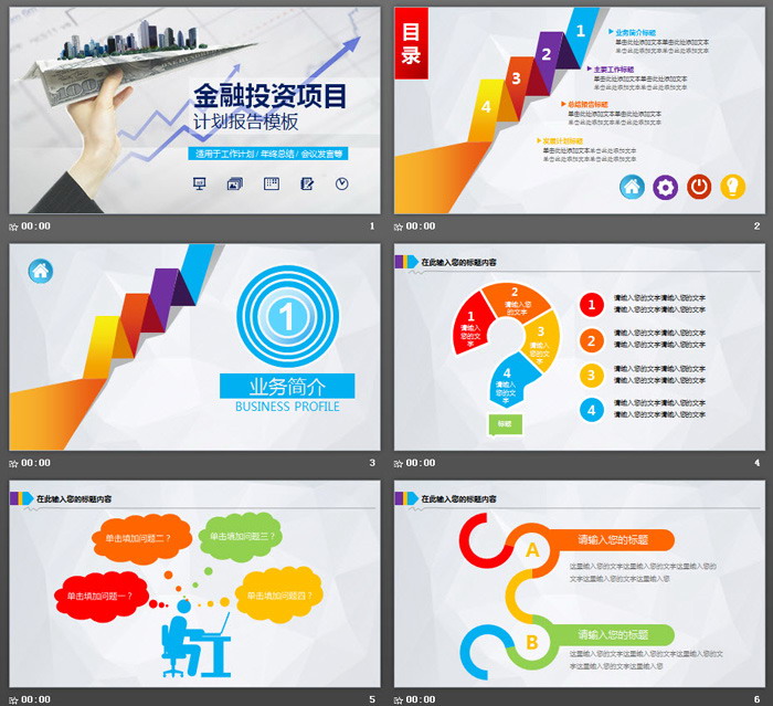这是一套纸飞机美元背景的,金融投资行业工作汇报PPT模板,共36张。第一PPT模板网提供金融投资理财相关幻灯片模板免费下载;