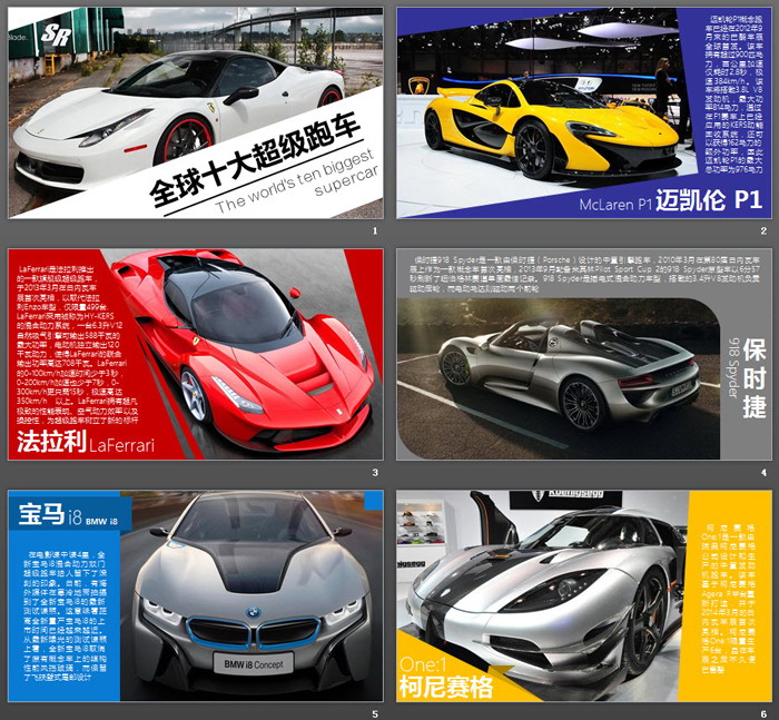 这是一套全球十大超级跑车介绍PPT,共12张。