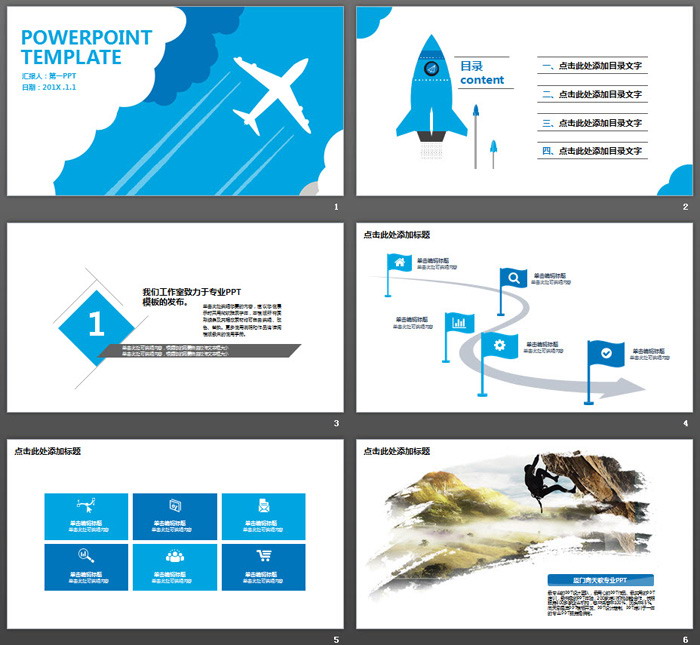 关键词:卡通扁蓝天白云、飞机PowerPoint背景图片,蓝色扁平化幻灯片图表,动态交通PPT模板,.PPTX格式;