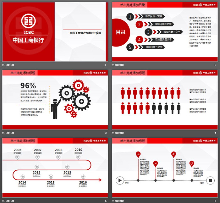 这是一套红色简洁扁平化工商银行专用PPT模板,共30张。