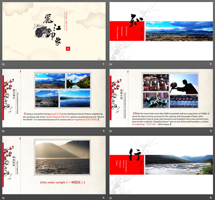 关键词:丽江旅游PPT介绍,动态中国风幻灯片模板,.PPTX格式;