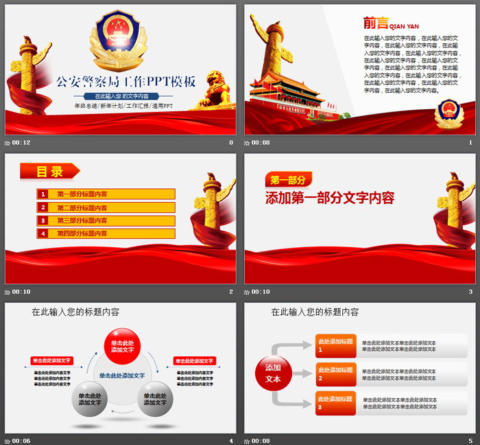 深蓝色与红色搭配的公安机关工作报告PPT模板