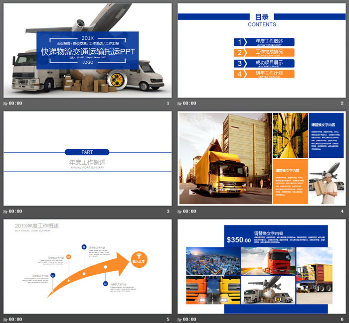 本模板适合用于制作快递物流行业工作总结PPT,交通运输相关PowerPoint等。.PPTX格式;