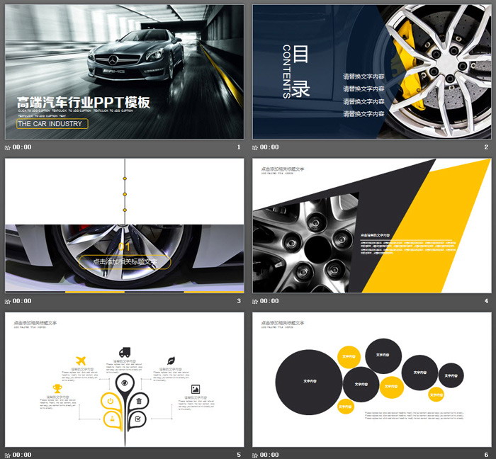 幻灯片模板使用了灰色作为主色调,与机器、机械、汽车行业非常贴切。PowerPoint模板封面,使用了一款高级跑车作为背景,非常炫酷。