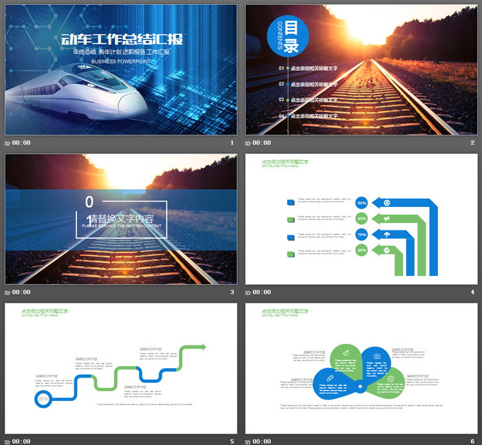 这是一套蓝色铁路高铁动车PPT模板,共22张。