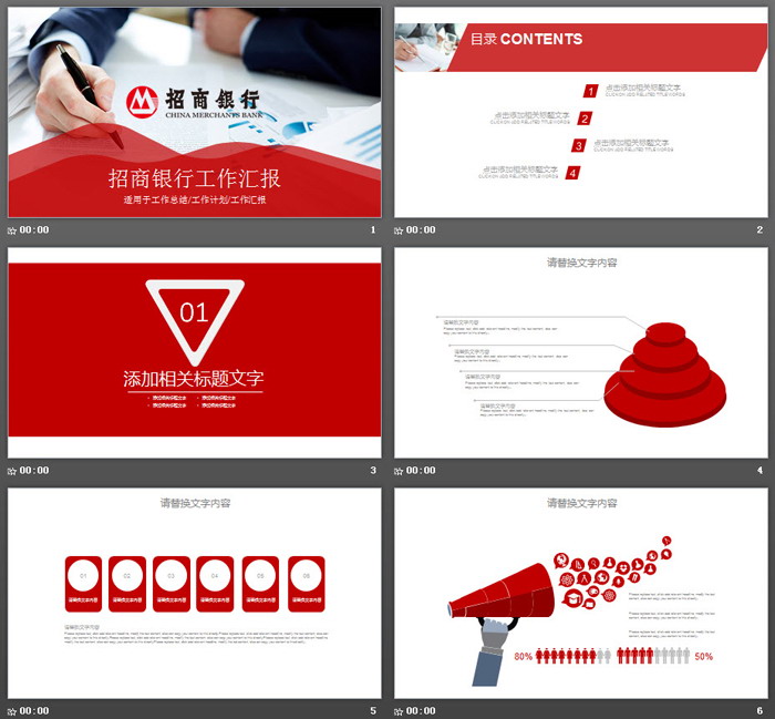 关键词:招商银行PPT模板,银行工作汇报、工作总结、工作计划PPT模板,.PPTX格式;