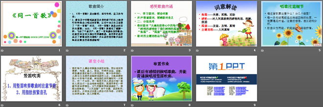 关键词:同一首歌教学课件,六年级上册音乐PPT课件下载,六年级音乐幻灯片课件下载,同一首歌PPT课件下载,.PPT格式;