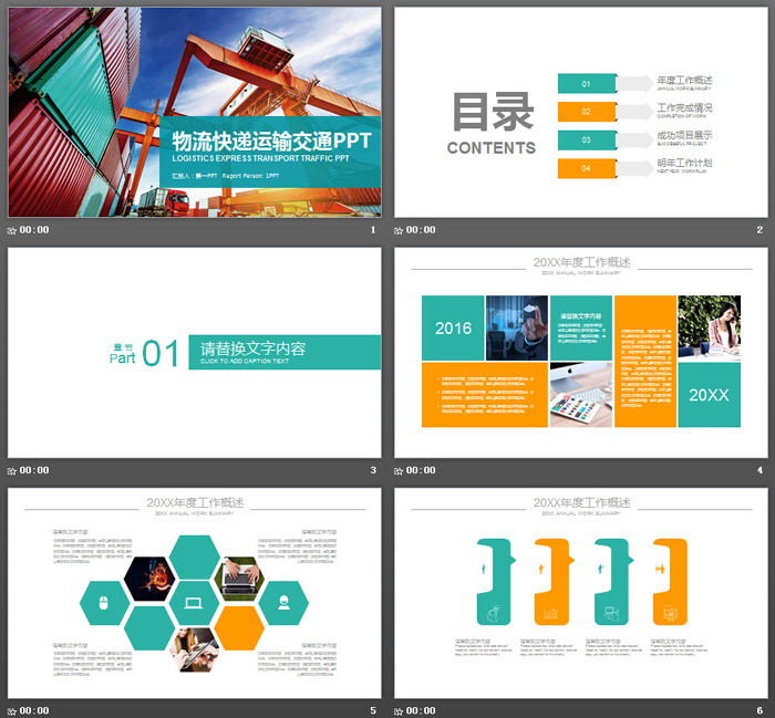 这是一套码头集装箱背景的,物流运输PPT模板。共22张。