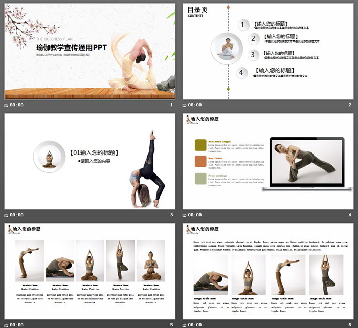 PowerPoint内容页面,使用了各种瑜伽动作作为排版对象。