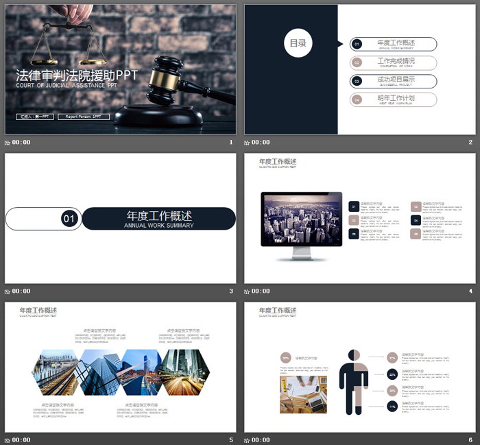 这是一套沉稳风格的,法院司法律师工作总结PPT模板,共22张。