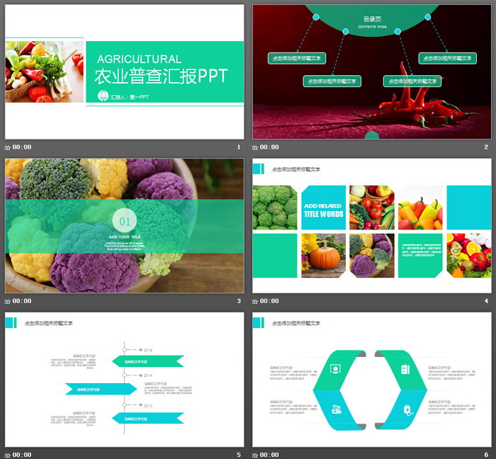这是一套绿色蔬菜农产品背景的农业PPT模板,共22张。
