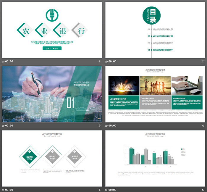 这是一套绿色简洁风格的,农业银行工作总结汇报PPT模板,共22张;
