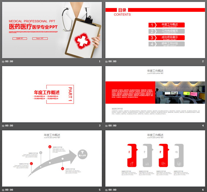 这是一套红色简洁医生护士工作总结PPT模板;