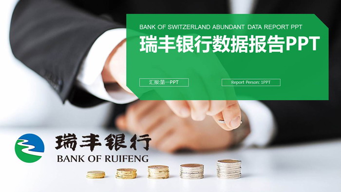 这是一套硬币背景的,瑞丰银行数据报告PPT模板,共22张;
