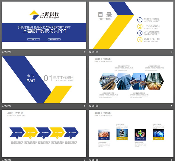 这是一套蓝黄搭配的,上海银行数据报告PPT模板,共22张;