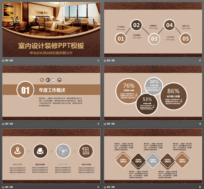 这是一套棕色室内设计PPT模板,共27张;