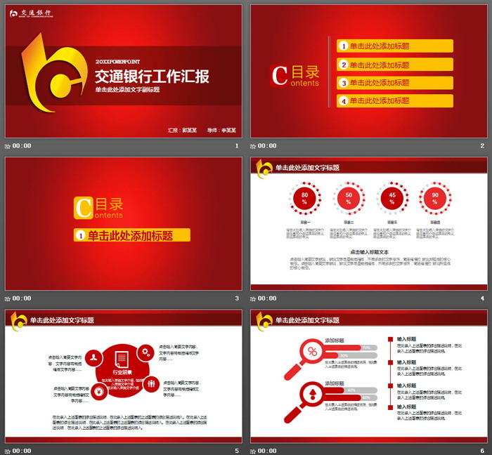 这是一套红色交通银行工作汇报PPT模板,共27张 ;