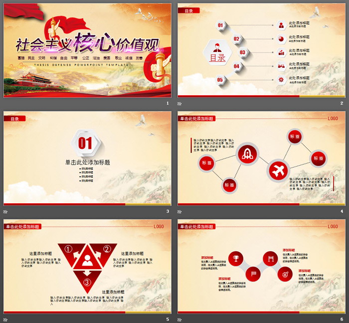 这是一套天安门华表背景的,社会主义核心价值观PPT模板,共26张;