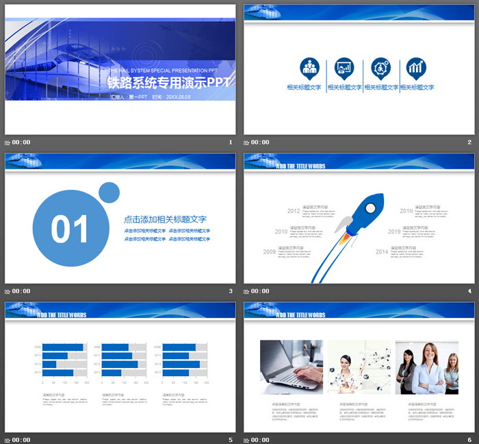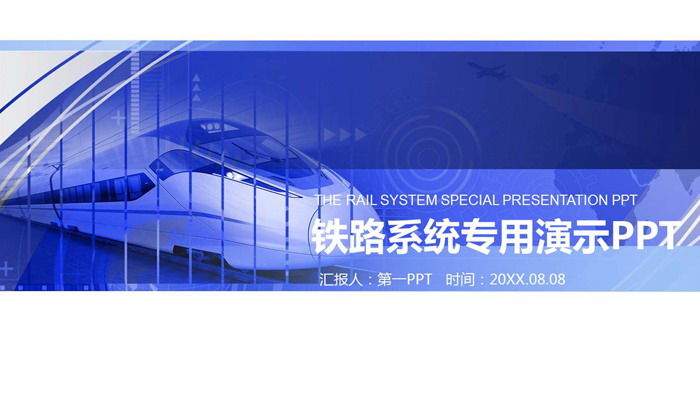 关键词:高铁、动车、和谐号、复兴号幻灯片背景图片,蓝色动态PowerPoint模板,铁路PPT模板,.PPTX格式;