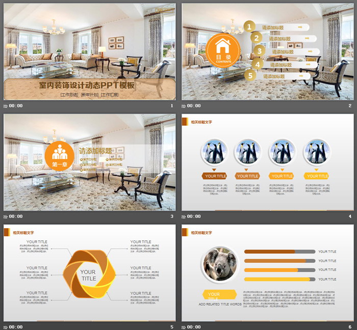关键词:欧式室内设计PowerPoint背景图片,装饰公司设计展示幻灯片模板,棕色黄色搭配PPT图表。.PPTX格式;