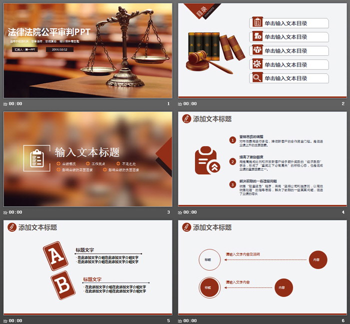 这是一张天平背景的法律公平判决PPT模板,共29张;