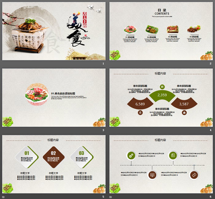 这是一套舌中国风样式设计的,尖上的美食PPT模板,共26张;
