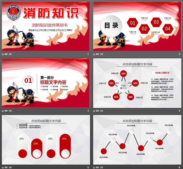 这是一套卡通消防员背景的,消防知识宣传PPT模板,共25张;