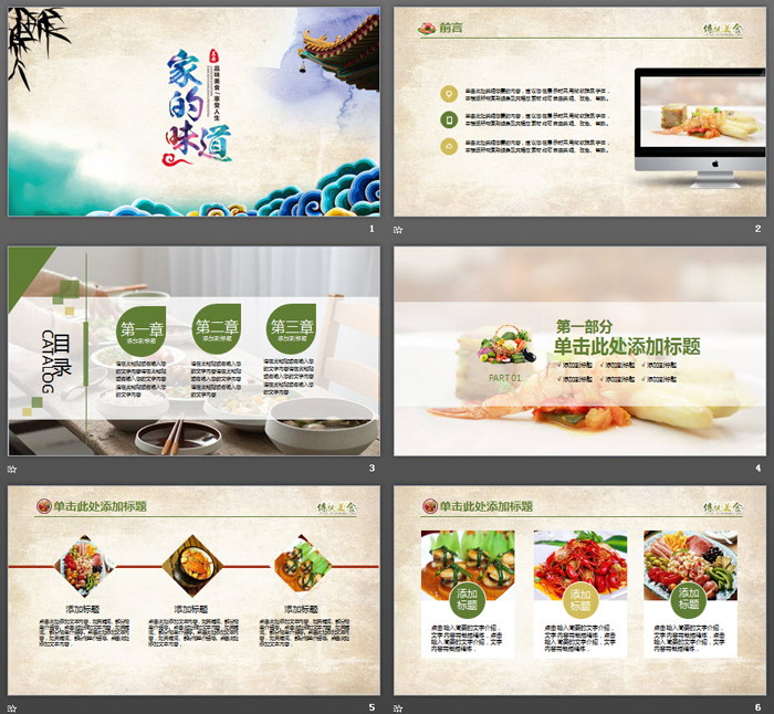 这是一套中国风设计的家的味道PPT模板,共26张;