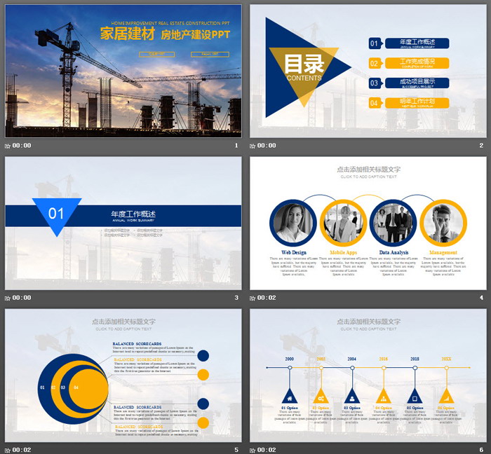 这是一套塔吊楼盘地基背景的房地产行业PPT模板,共26张;