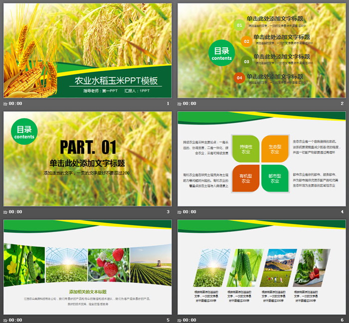 这是一套水稻小麦玉米背景的农产品PPT模板,共27张;