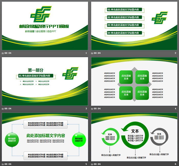 这是一套绿色曲线装饰的,中国邮政储蓄银行PPT模板,共27张;