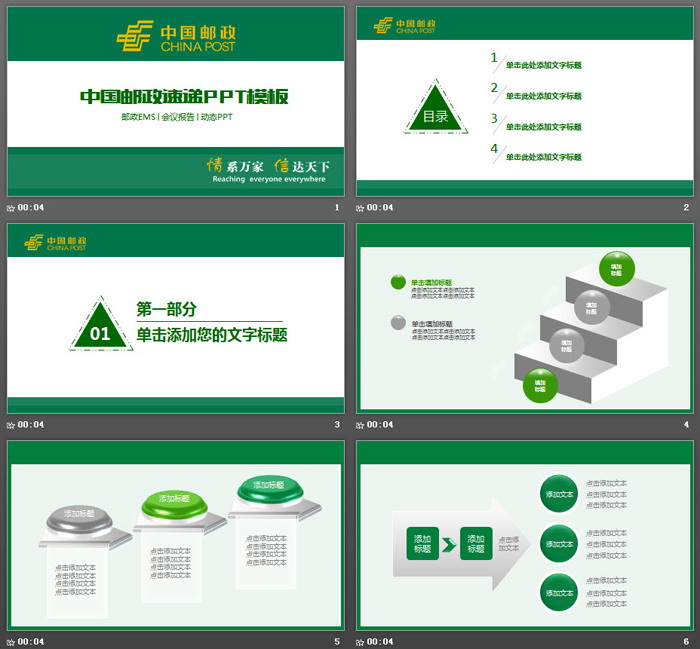 这是一套绿色中国邮政专用PPT模板,共27张 ;
