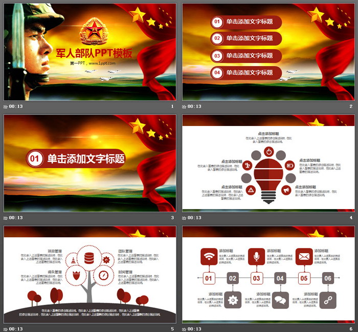 本模板适合用于制作建军节PPT,以及与国防建设、军人、部队演习有关的PowerPoint,.PPTX格式;