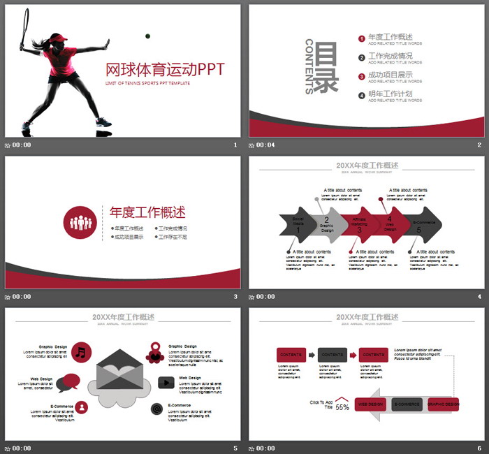 这是一套简洁网球运动员PPT模板,共26张;