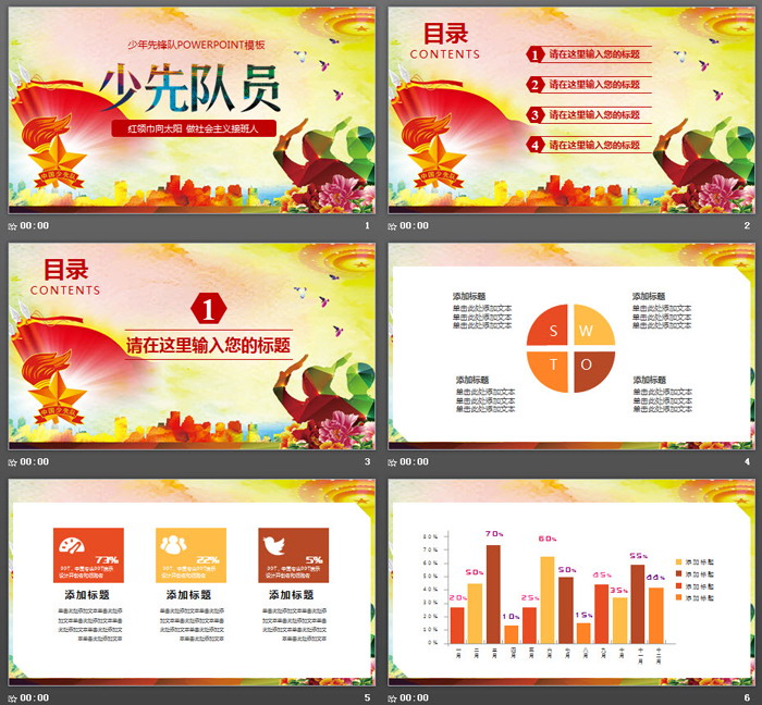 这是一套彩色扁平化少先队PPT模板,共27张;