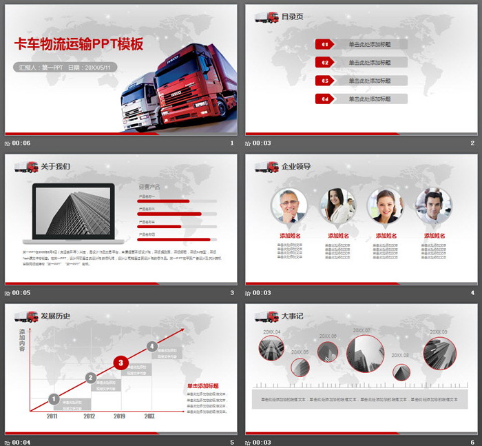 这是一套卡车背景的物流运输PPT模板,共31张;