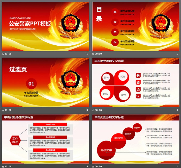 这是一套红色公安警察工作汇报PPT模板,共27张;